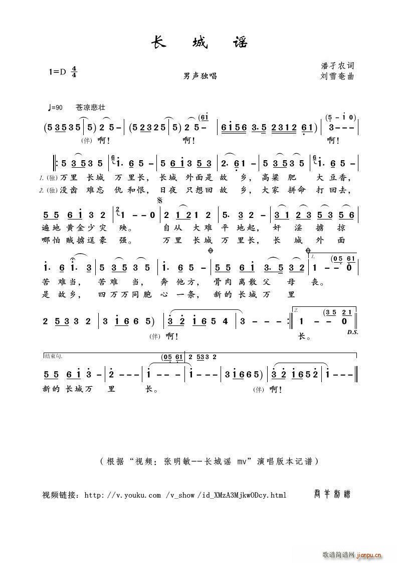 [三字歌谱]长城谣(《关山万里》主题歌) 未知