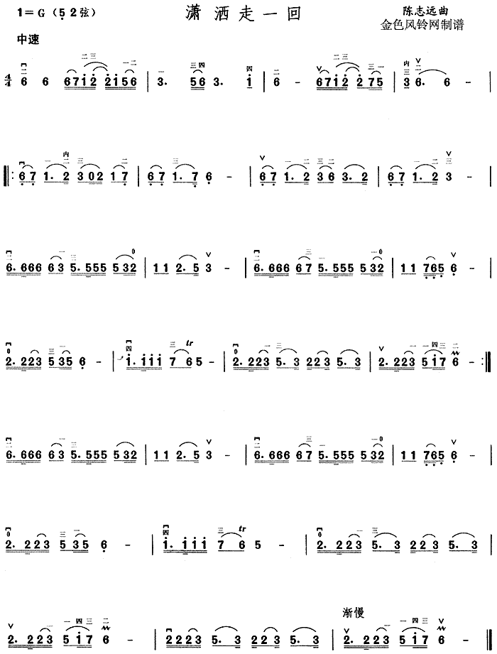 [二胡谱]潇洒走一回[二胡曲谱] 未知