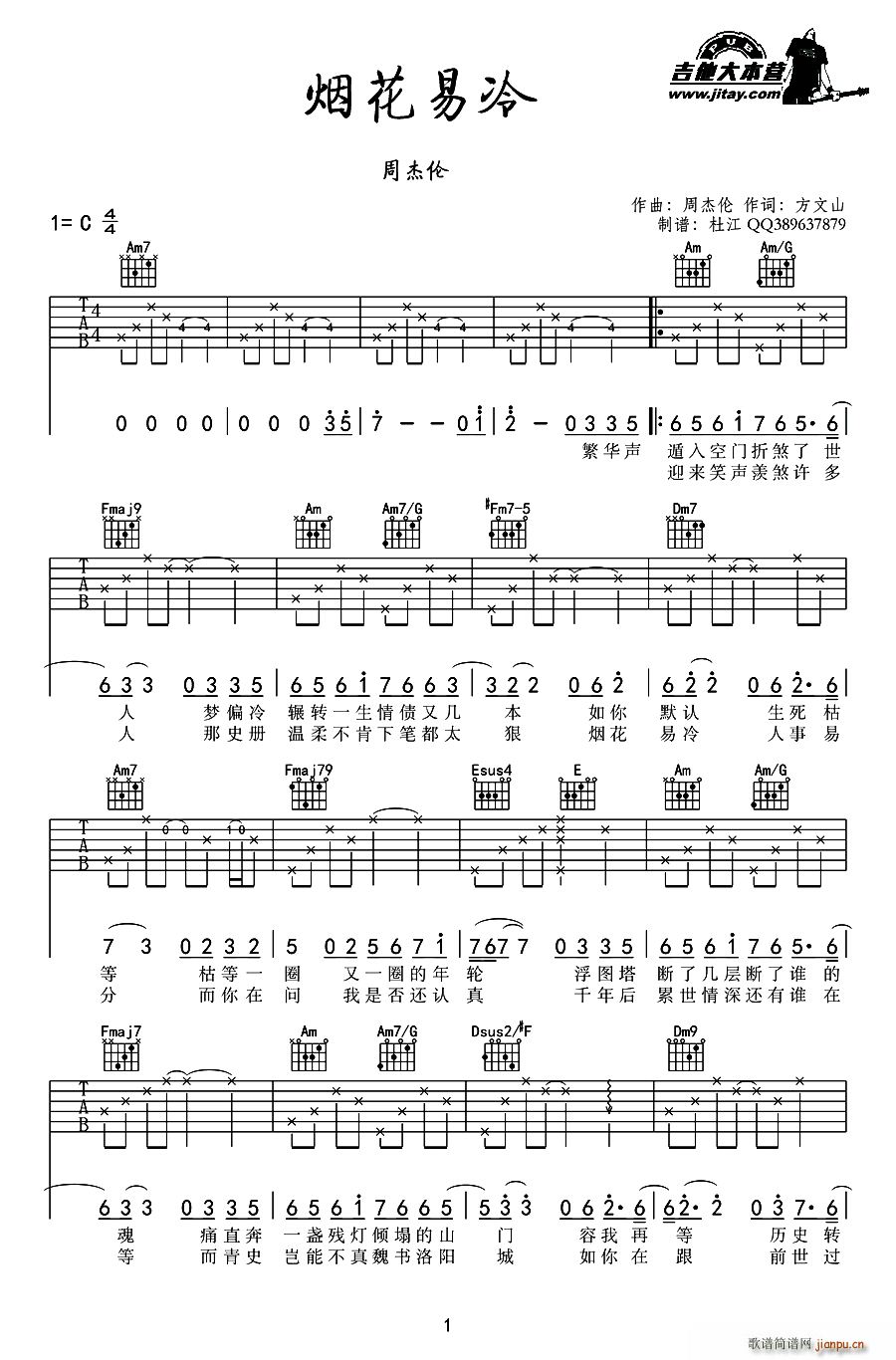 [吉他谱]烟花易冷 周杰伦