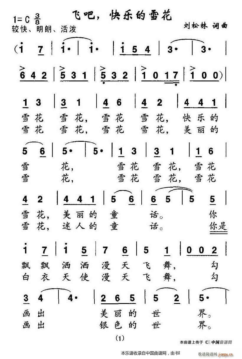 [八字歌谱]飞吧,快乐的雪花