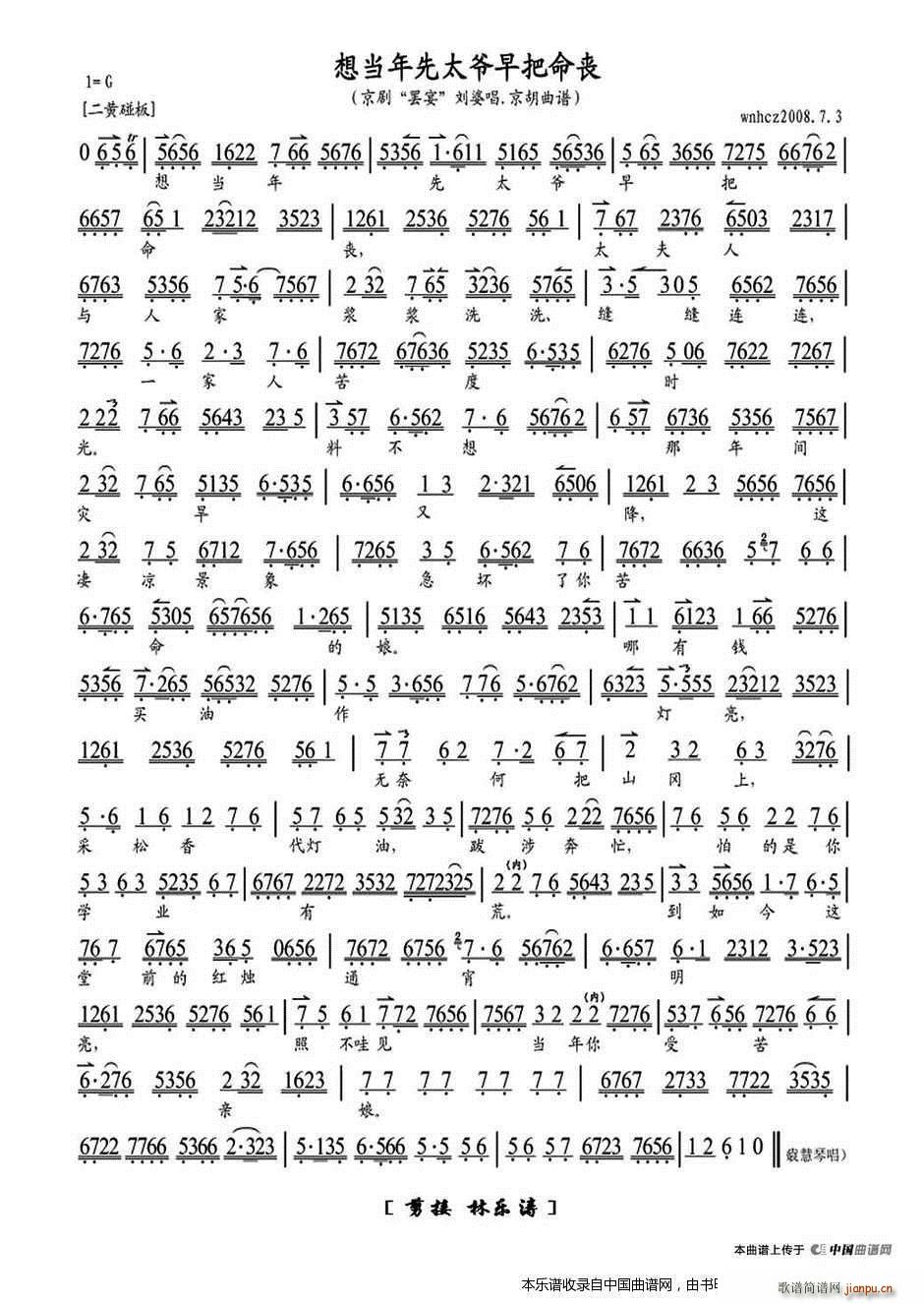 [京剧曲谱]想当年先太爷早把命丧(《罢晏》刘婆唱段、琴谱) 京剧戏谱 袁慧琴