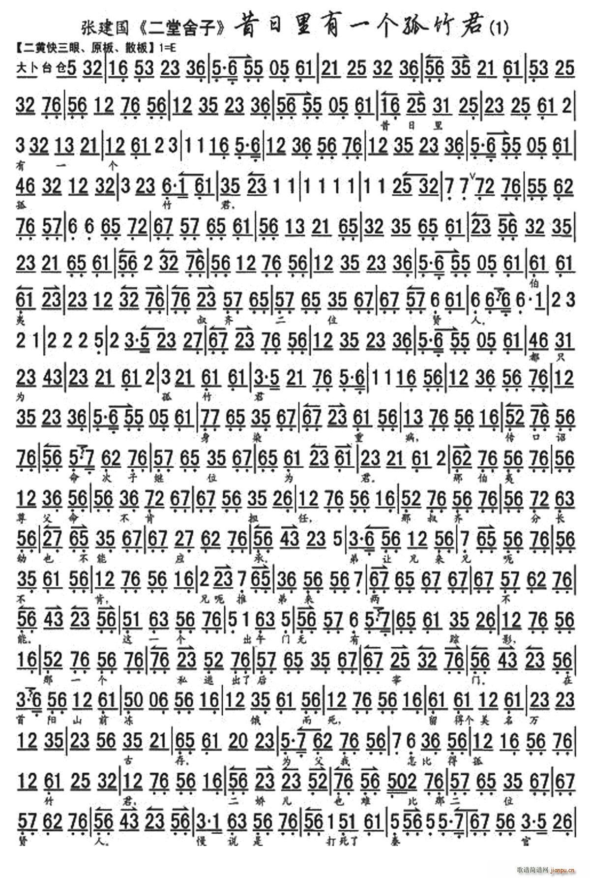 昔日里有一个孤竹君(《二堂舍子》选段、琴谱)
