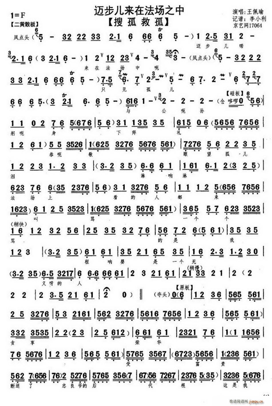 [京剧曲谱]迈步儿来在法场之中(《搜孤救孤》选段、琴谱) 王佩瑜