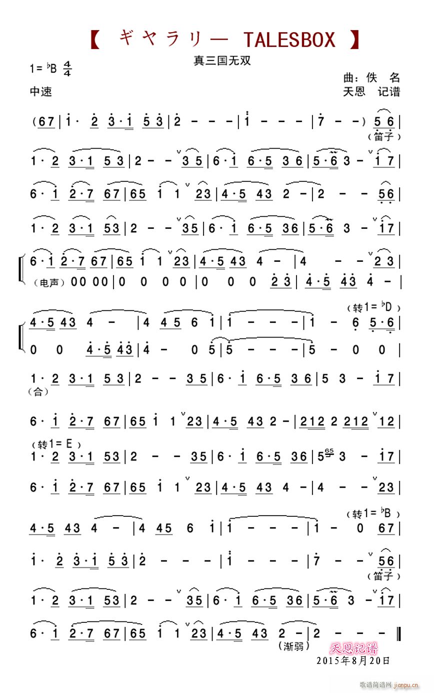 [笛箫谱]ギャラリーtalesbox(真三国无双音乐)笛箫谱