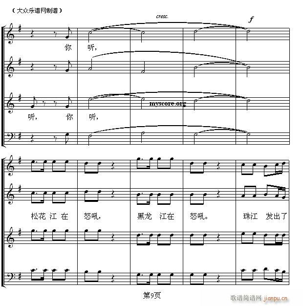 [合唱谱]怒吼吧 黄河 (混声合唱)