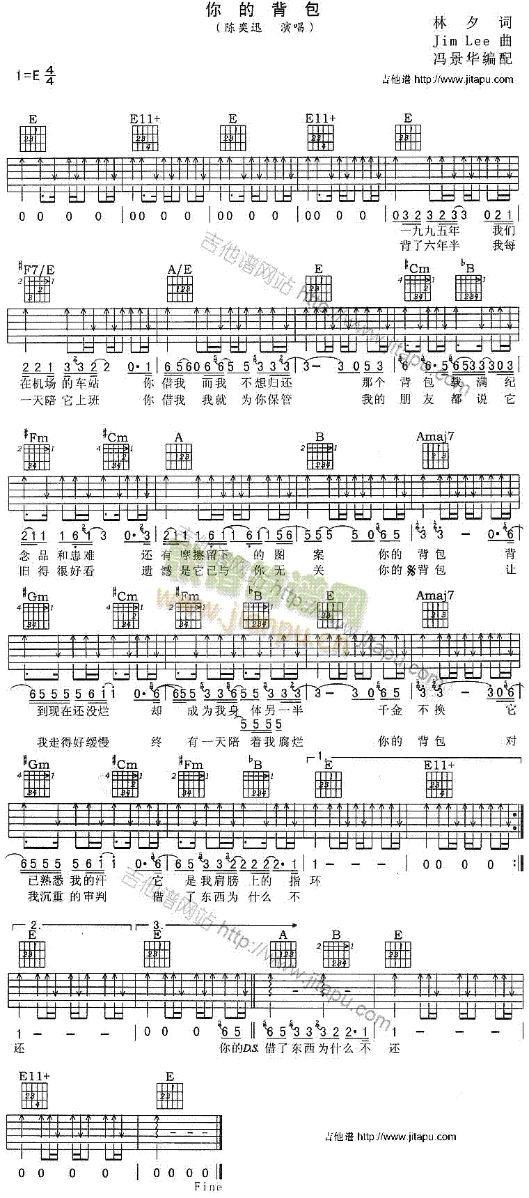 [吉他谱]你的背包(陈奕迅演唱) 未知