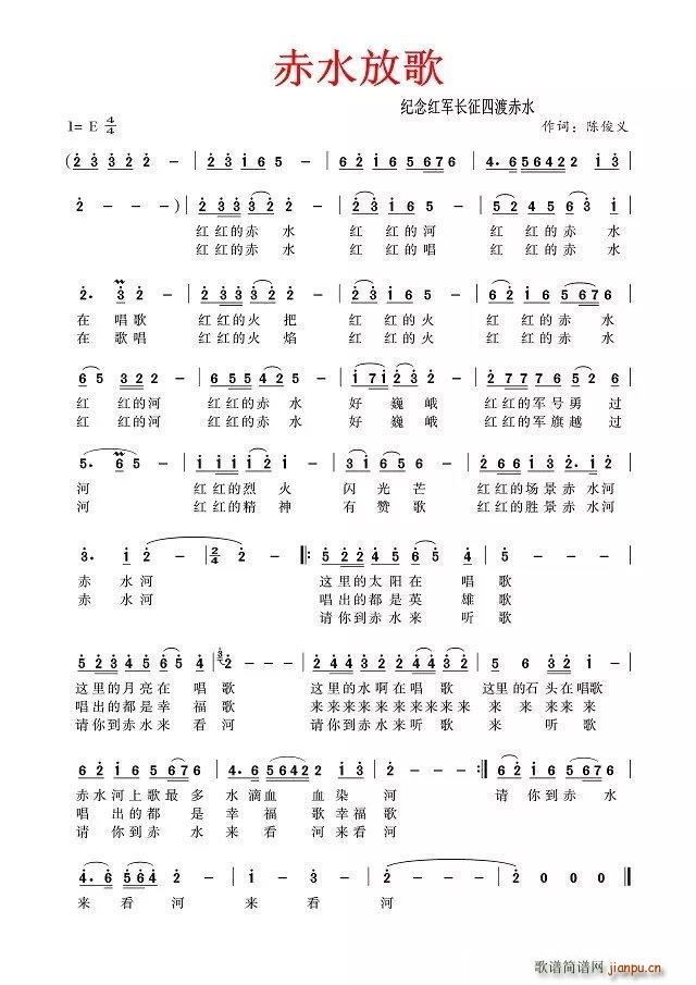 [五字歌谱]赤水放歌(陈俊义 词曲) M佳M