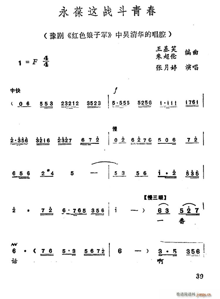 [豫剧曲谱]永葆这战斗青春(《红色娘子军》中吴清华唱腔) 张月婷