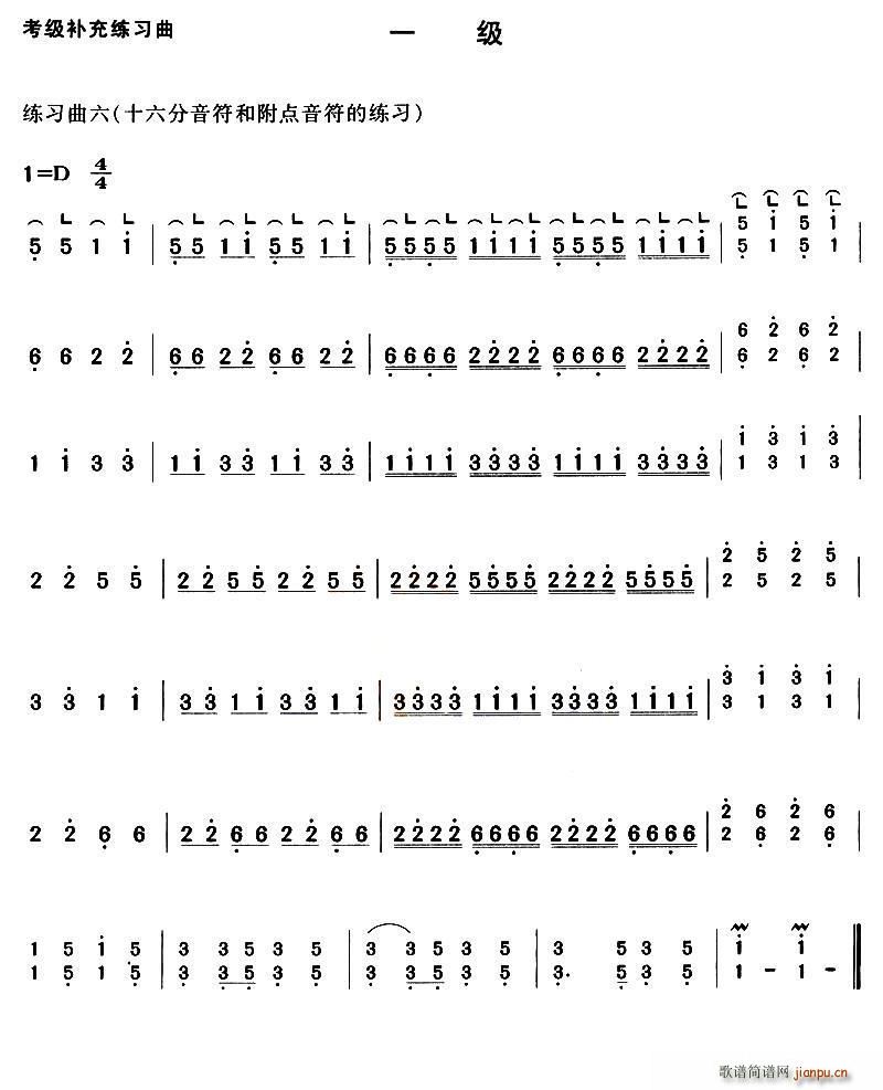 [古筝扬琴谱]古筝考级补充练习曲六级