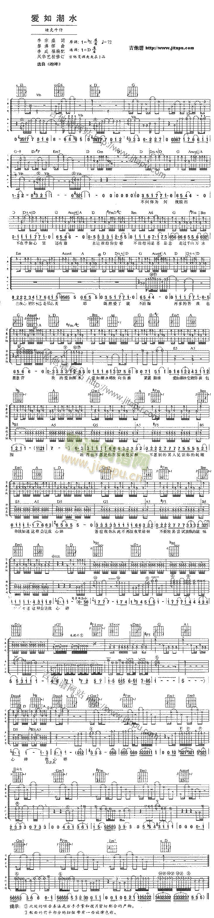 [四字歌谱]爱如潮水(乐队乐谱)[手稿] 张信哲(乐队演奏谱)