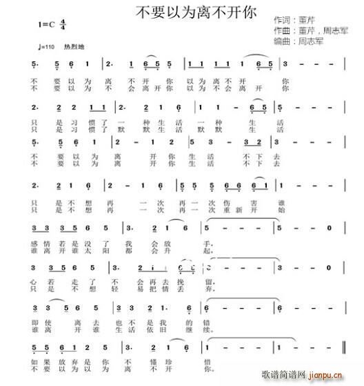 [八字歌谱]不要以为离不开你 董芹