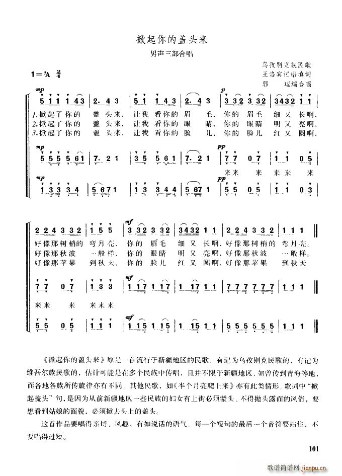 [合唱谱]掀起你的盖头来(维吾尔族民歌)