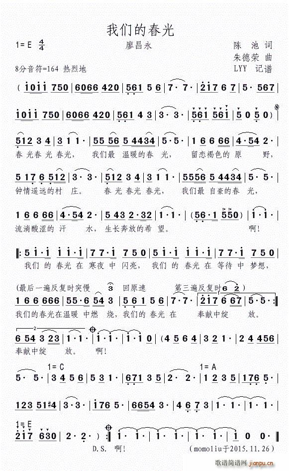 [五字歌谱]我们的春光(陈池词 朱德荣曲) 廖昌永
