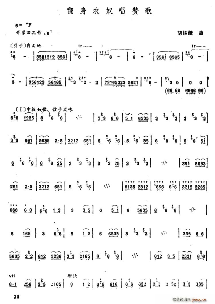 [笛箫谱]唱赞歌 翻身农奴