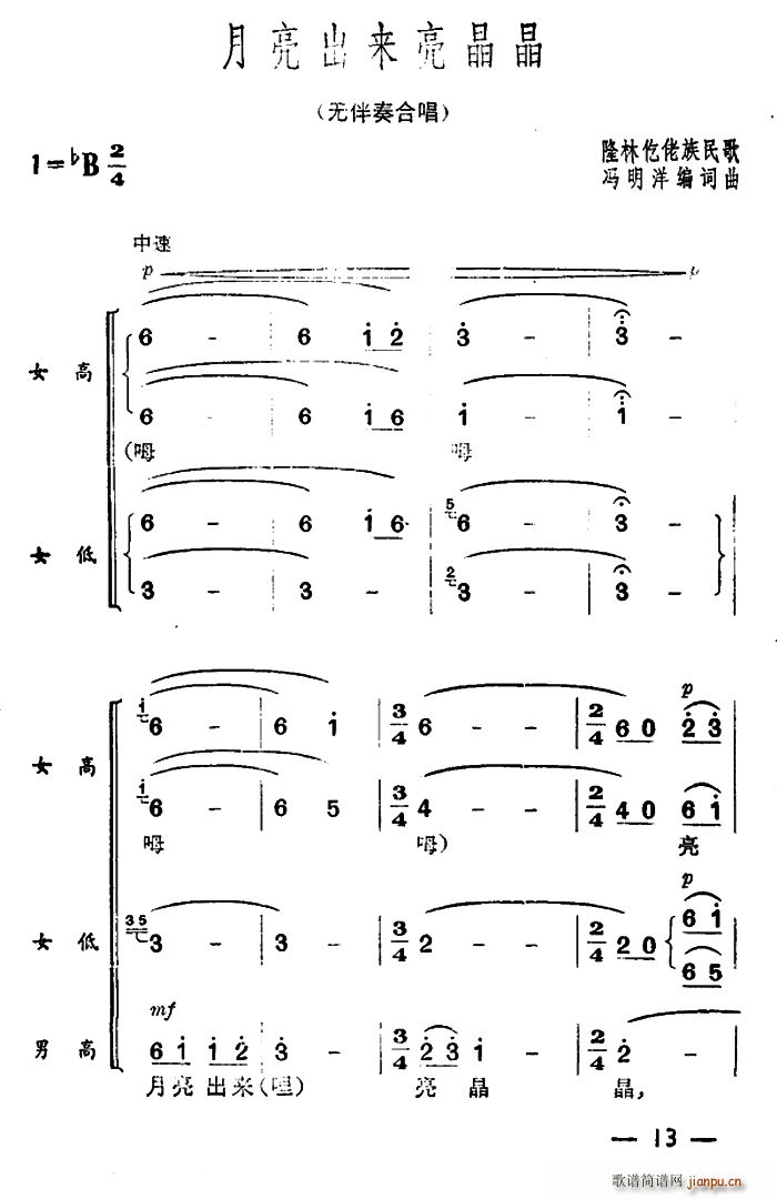 [合唱谱]月亮出来亮晶晶(无伴奏合唱)