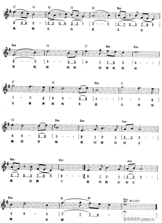 [六字歌谱]敢问路在何方(《西游记》主题歌) 蒋大为