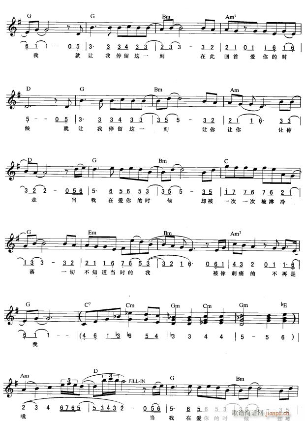 [电子琴谱]当我在爱你的时候( 唱)3 简线弹