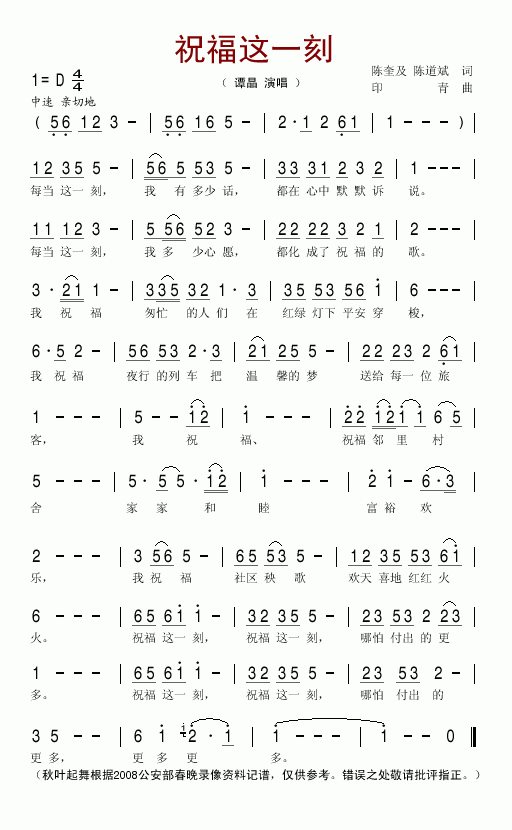 [三字歌谱]那一刻(《荒路》插曲) 毛阿敏