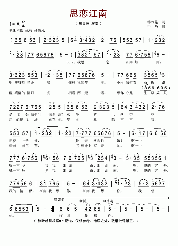 [四字歌谱]思恋江南 周灵燕