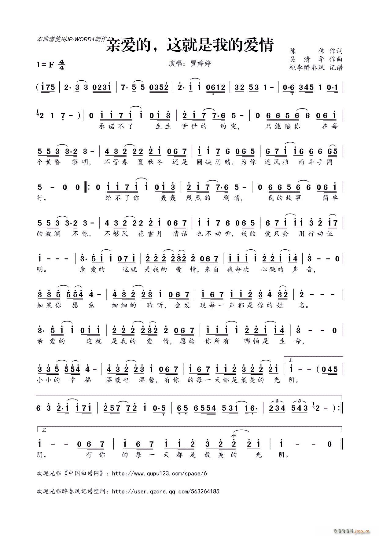 [八字歌谱]《爱你就是我的爱情》谢铁跃词曲,黄清林编