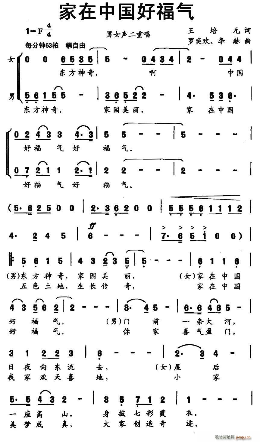 [七字歌谱]家在中国好福气(王培元词 罗亦欢曲) 文婕新鹏