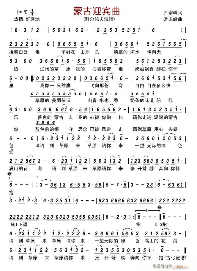 [五字歌谱]蒙古迎宾曲 科尔沁夫