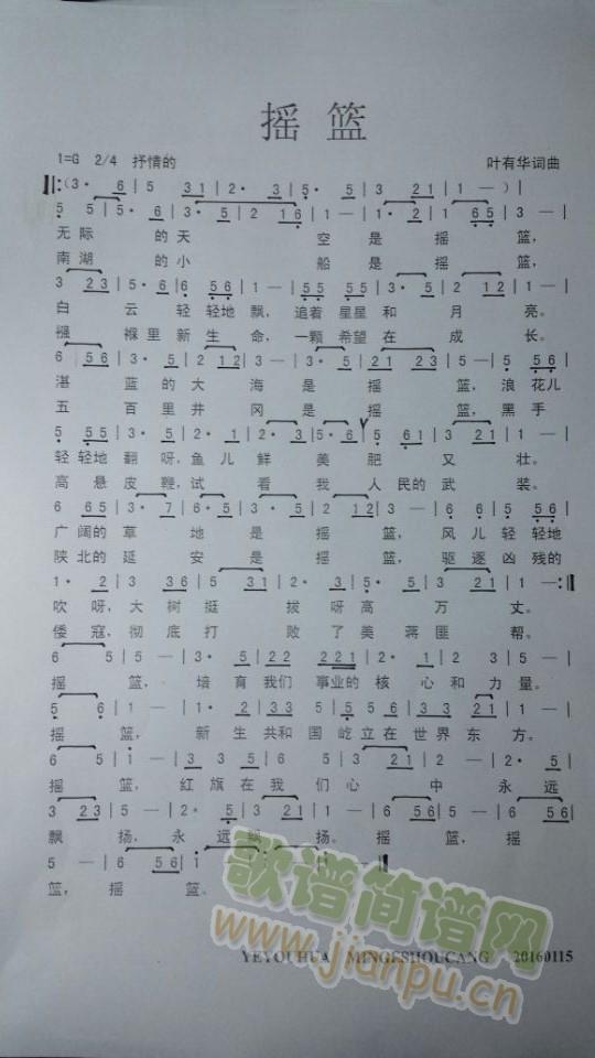 [二字歌谱]摇篮 叶有华民歌收藏工作室