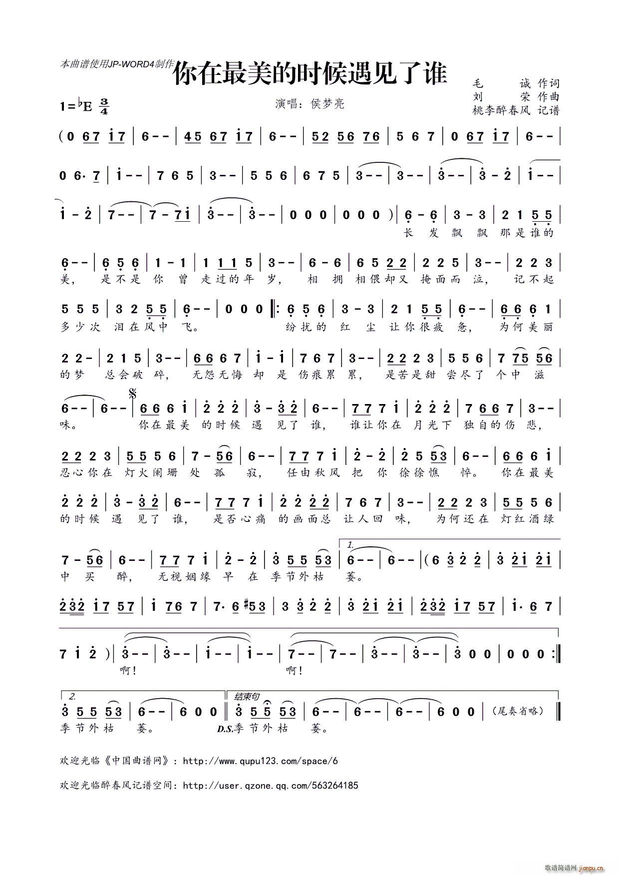 [八字歌谱]最美的遇见】彩谱】 张娇