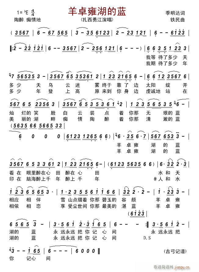[六字歌谱]羊卓雍湖的蓝 扎西勇江
