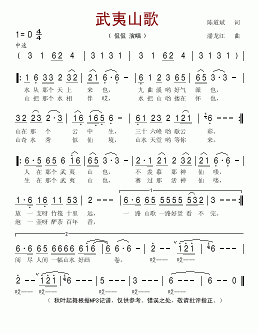 [四字歌谱]武夷山歌 侃侃
