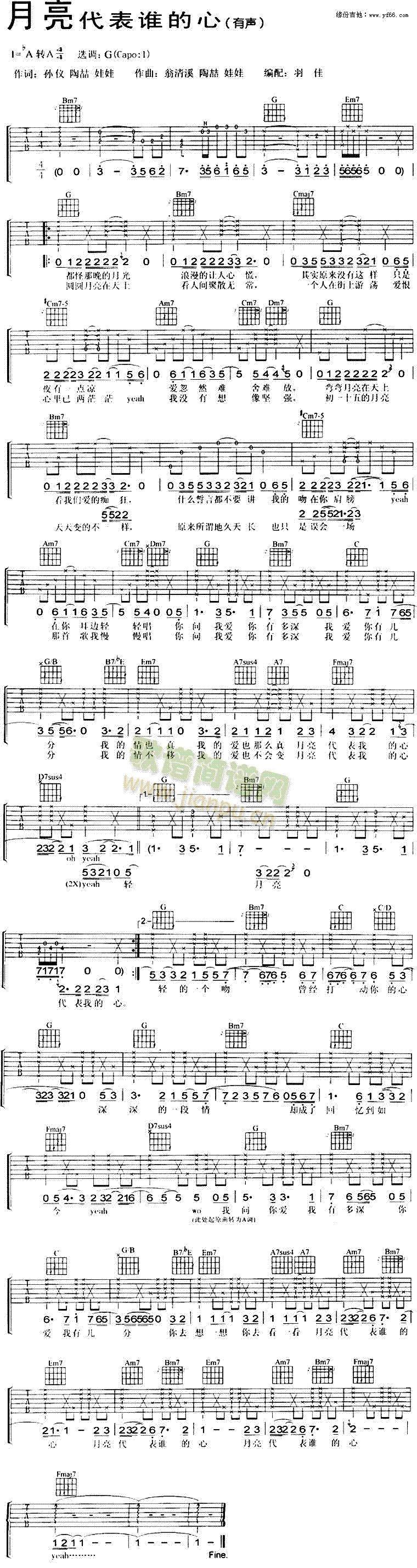 [吉他谱]月亮代表谁的心 陶喆