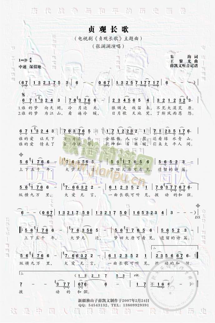 [四字歌谱]贞观长歌(同名电视剧主题曲) 未知