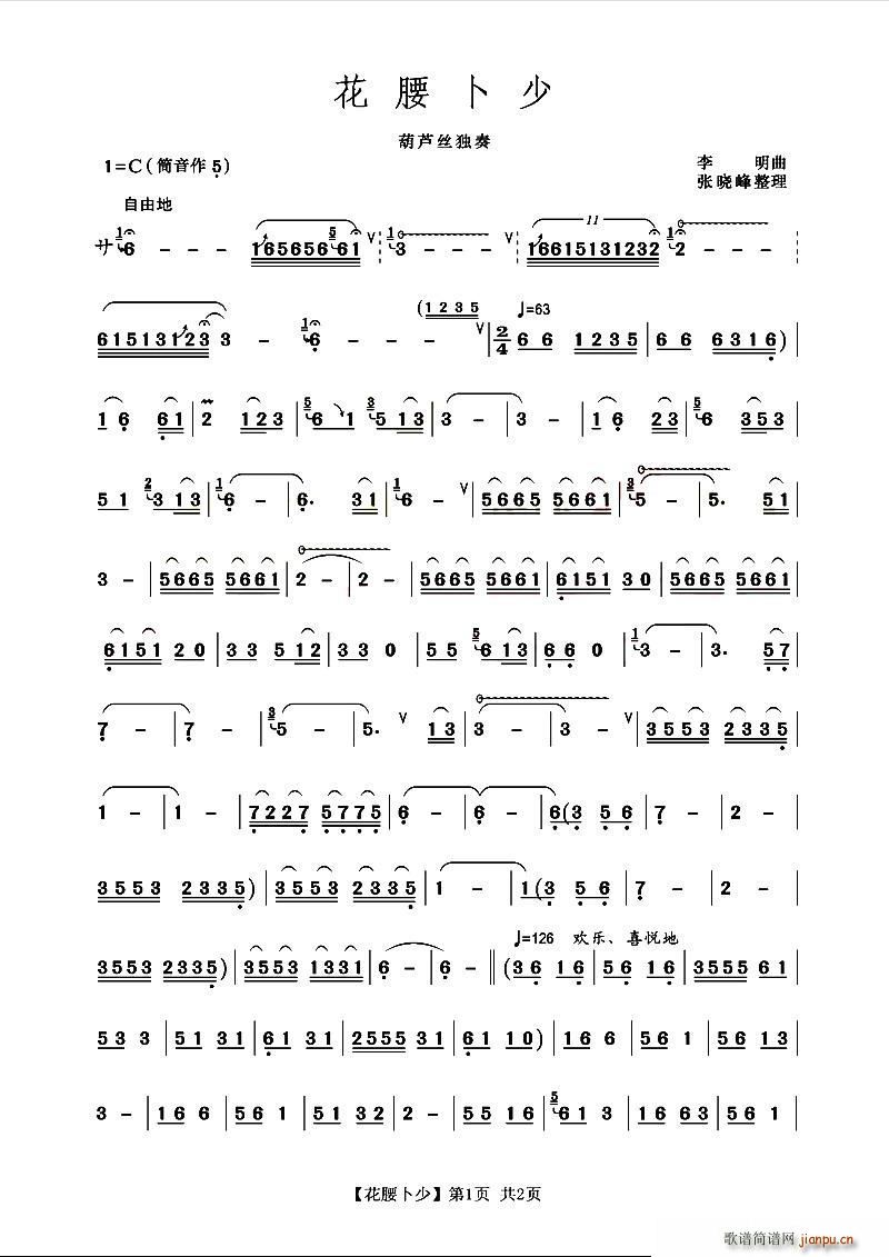 当前位置: 歌谱简谱网 > 葫芦丝谱 > 花腰卜少 葫芦丝等