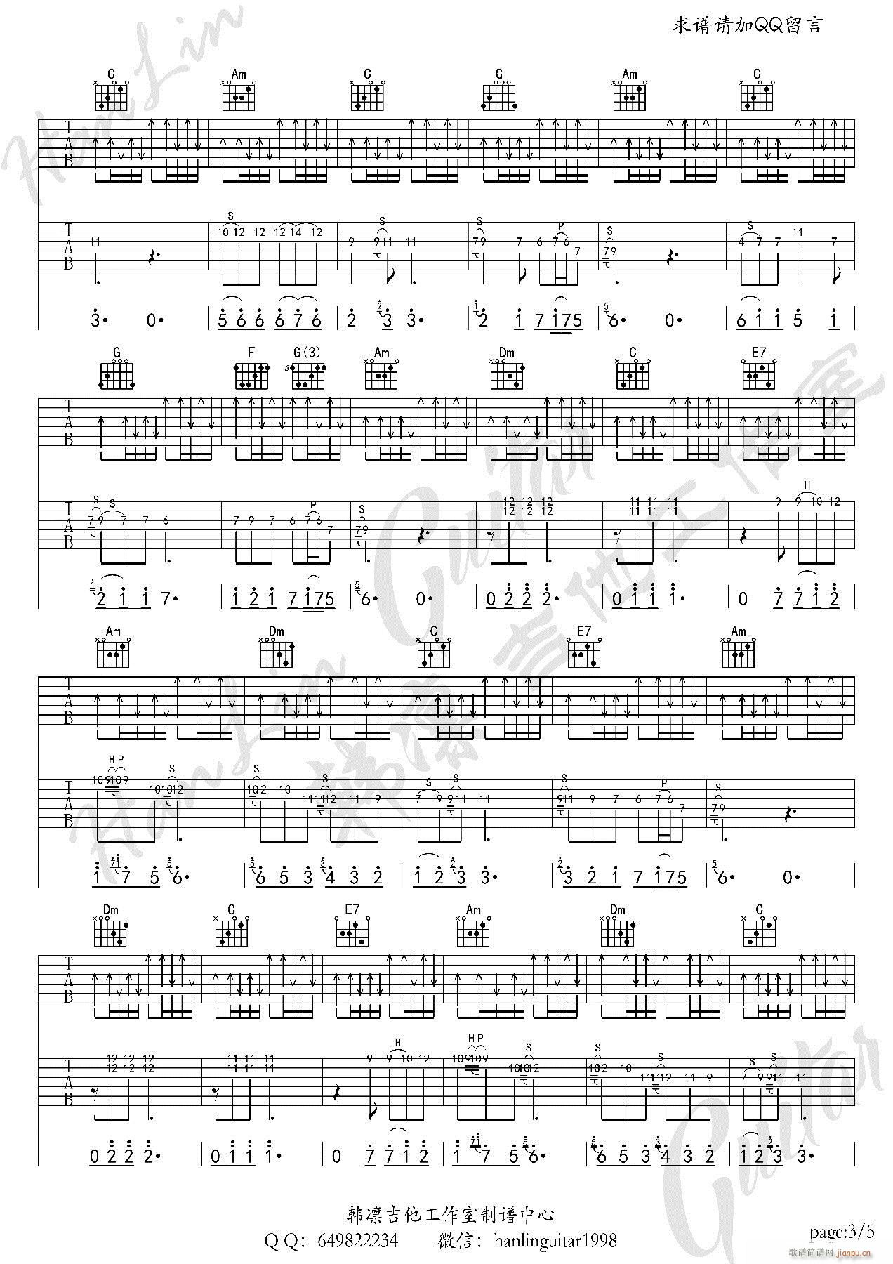 [吉他谱]无忧房客 韩凛吉他工作室(韩凛编配) 曹槽