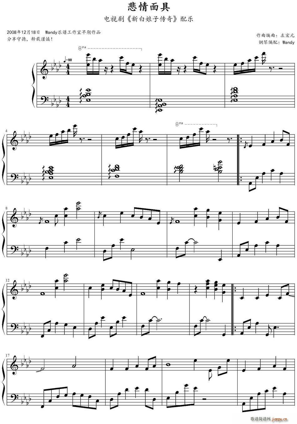 [钢琴谱]纠缠 新白娘子传奇 高胜美