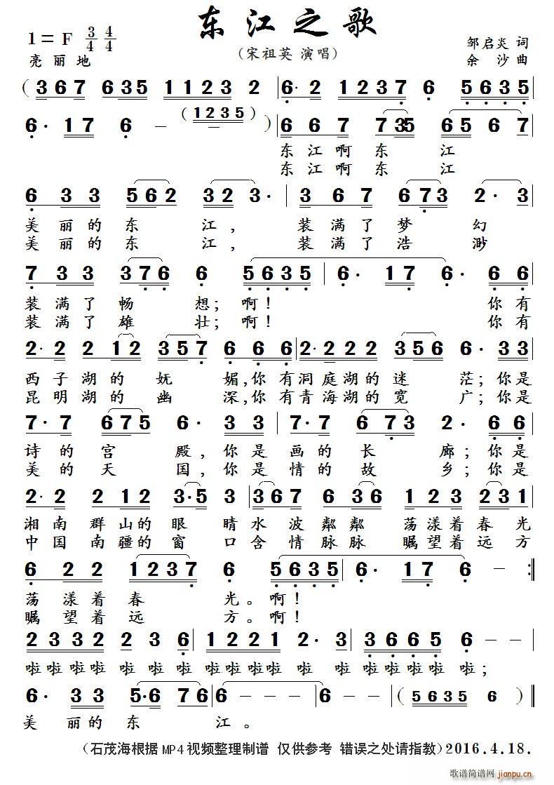 东江之歌 (作词 于 沙 作曲 邹启炎)