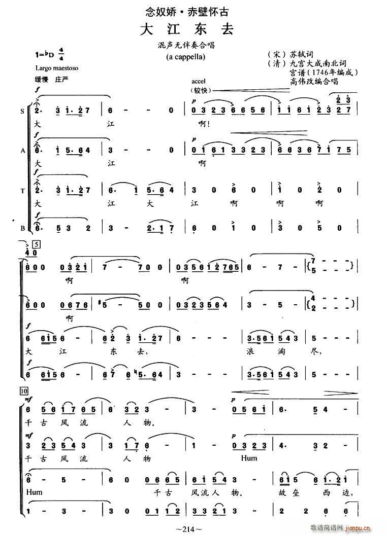 [其他乐谱]大江东去 歌曲类 合唱谱 简谱合唱