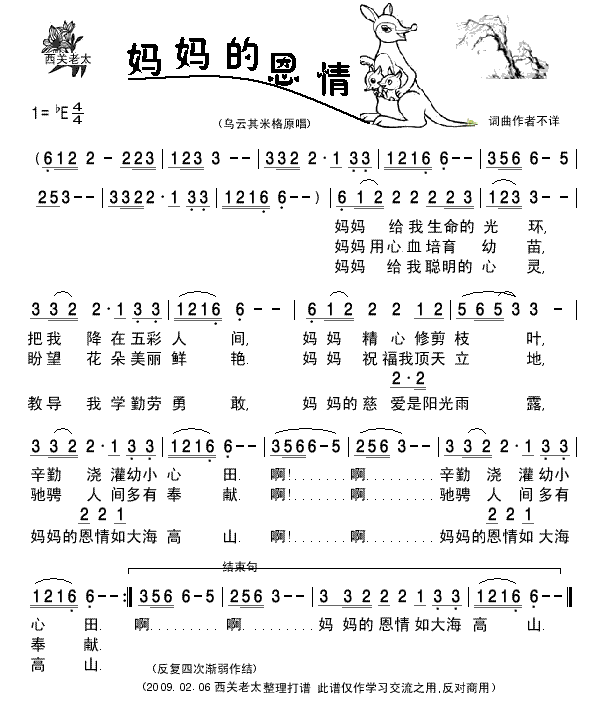 [五字歌谱]母亲的恩情(蒙古民歌)