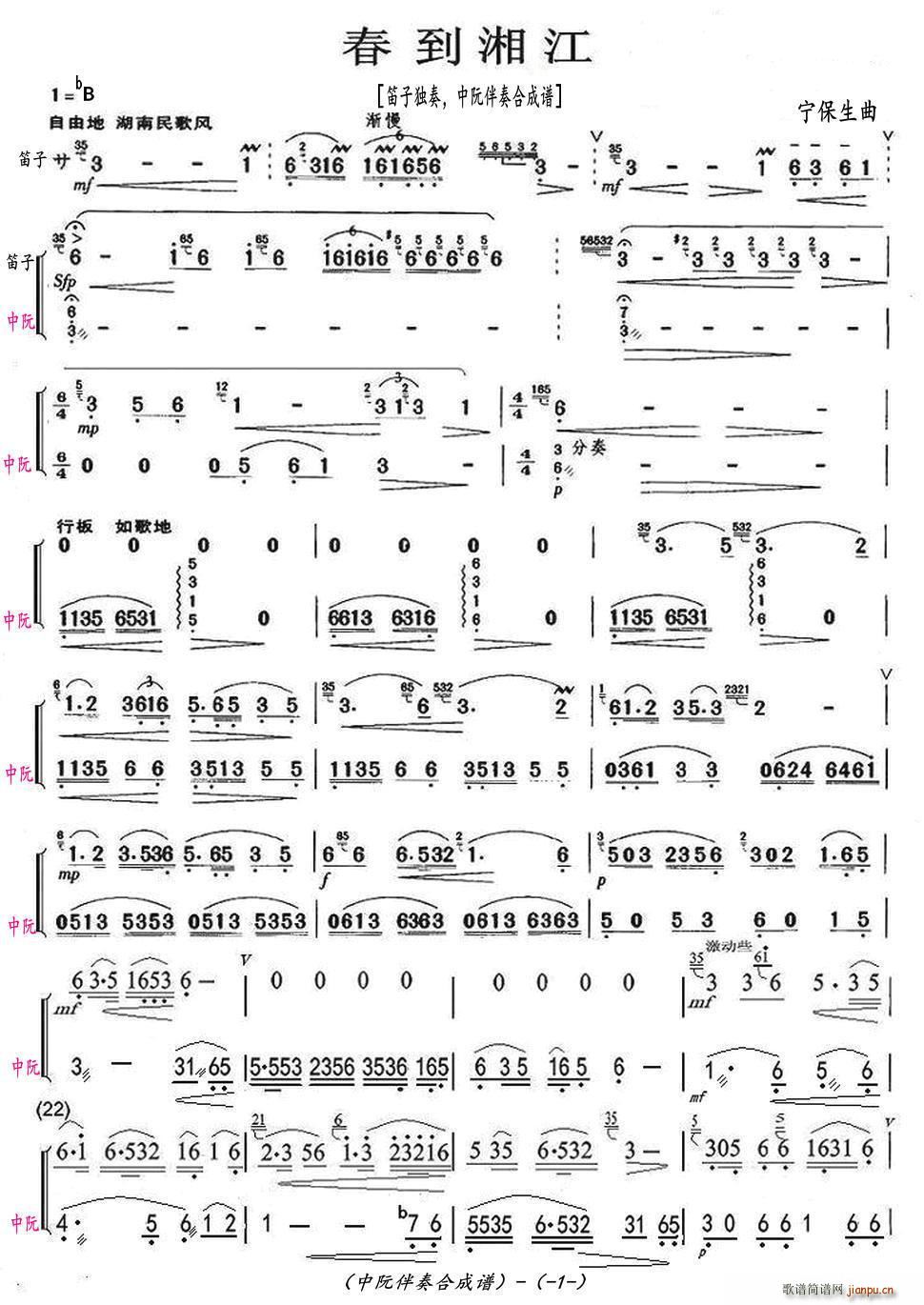 [笛箫谱]春到湘江(笛子独奏中阮伴奏合成谱)