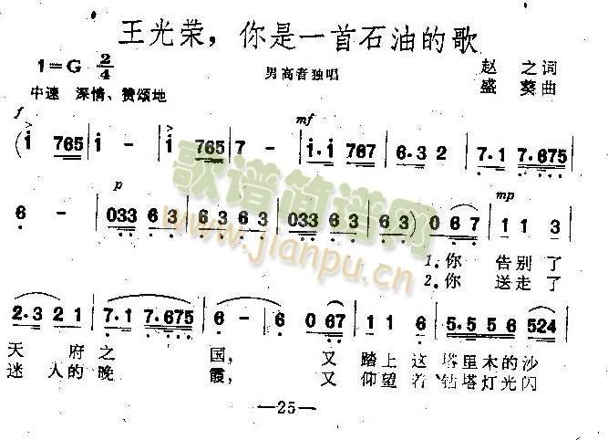 [十字及以上]王光荣,你是一首石油的歌(男高音独唱)