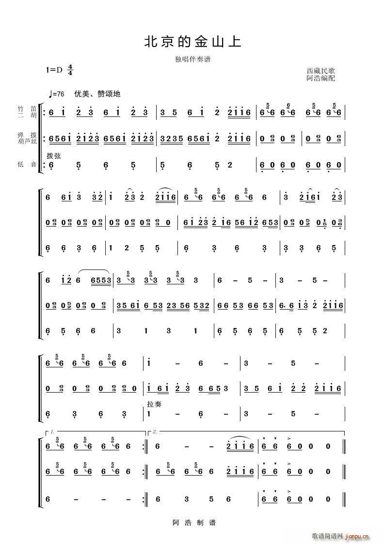 [六字歌谱]北京的金山上 未知