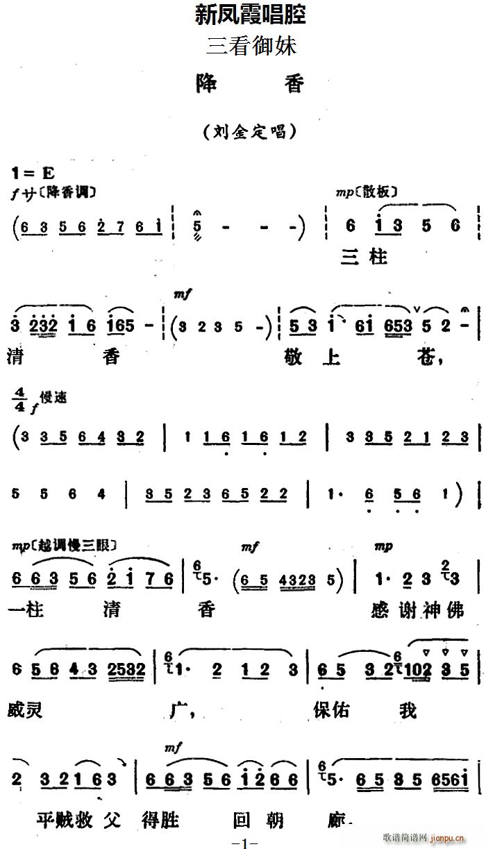 [八字歌谱]降香调《三看御妹》 新凤霞