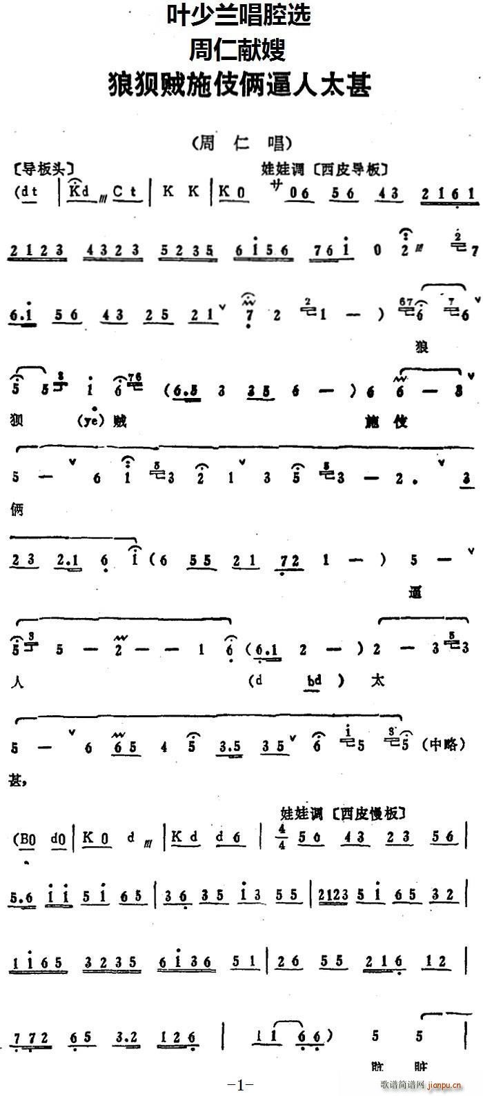 [十字及以上]唱腔选 狼狈贼施伎俩逼人太甚(《周仁献嫂》周仁唱段) 叶少兰