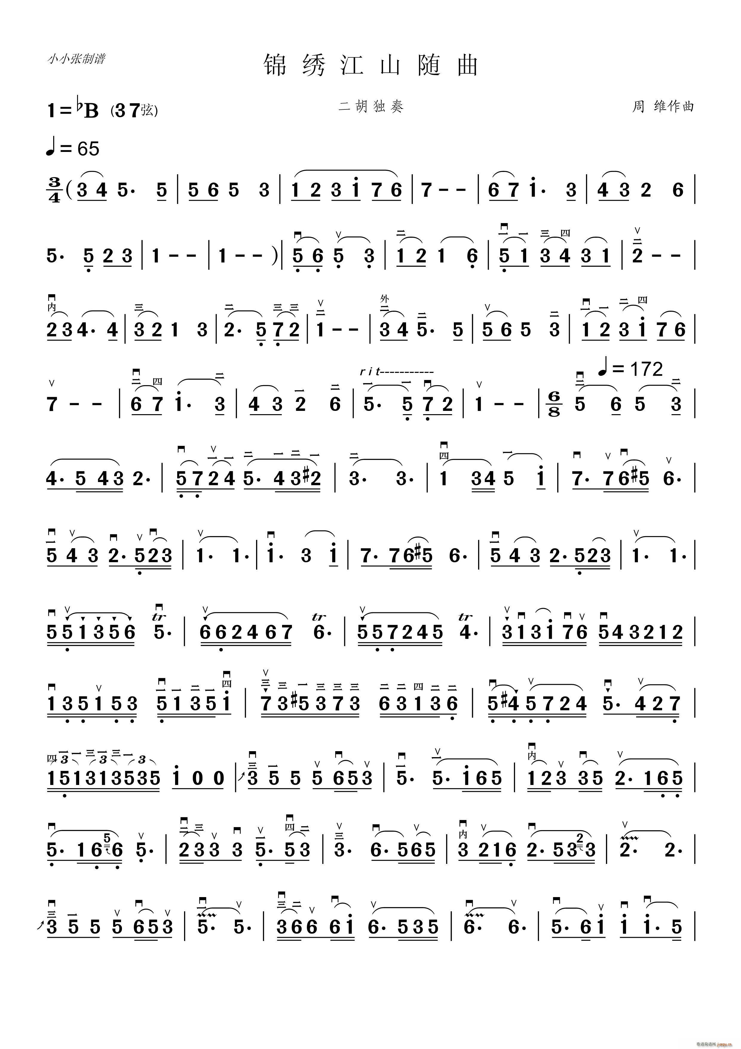 [二胡谱]锦绣江山随想曲(二胡独奏)(小小张制谱)