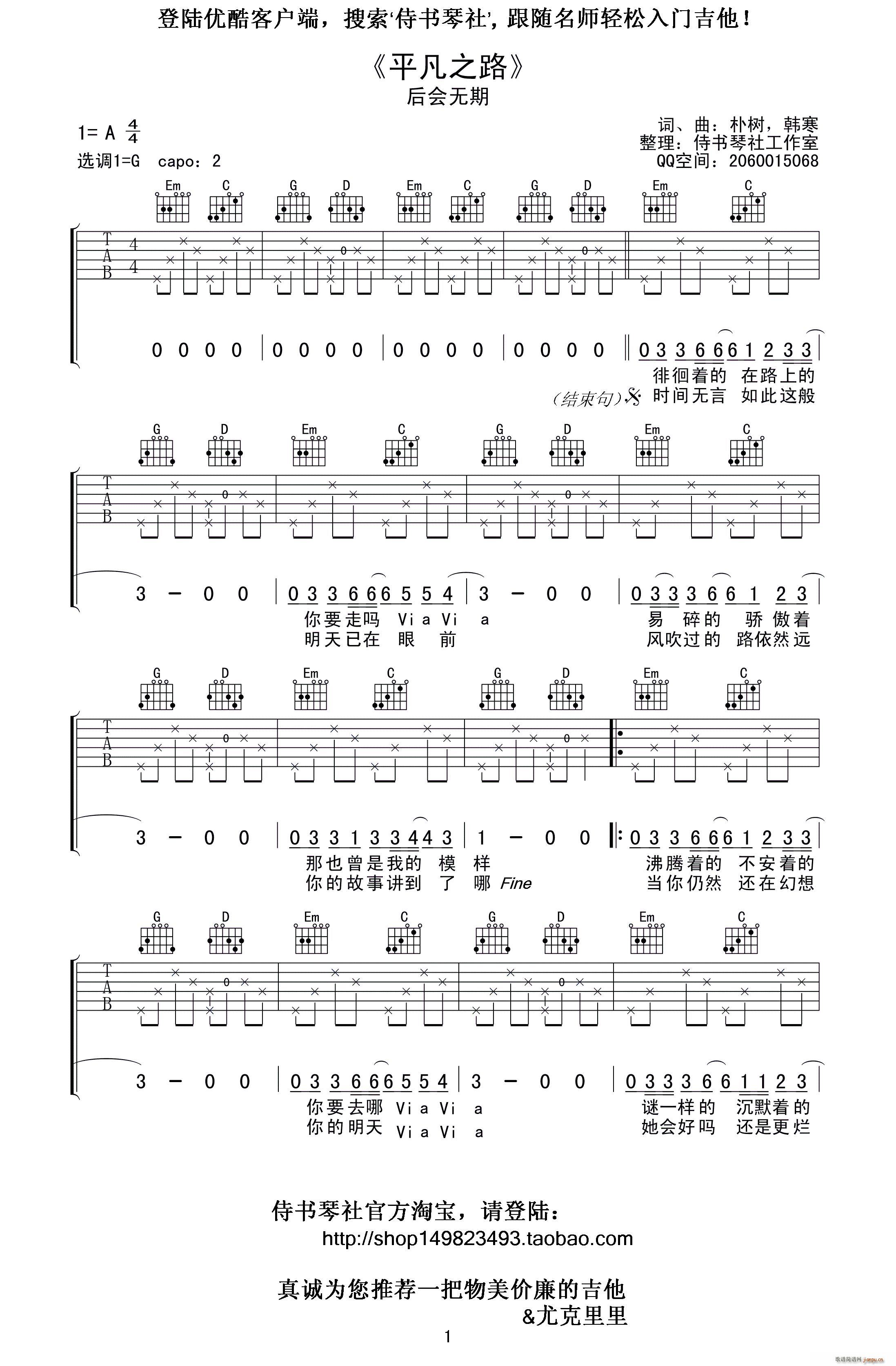 [吉他谱]《平凡之路》完整吉他弹唱谱 朴树