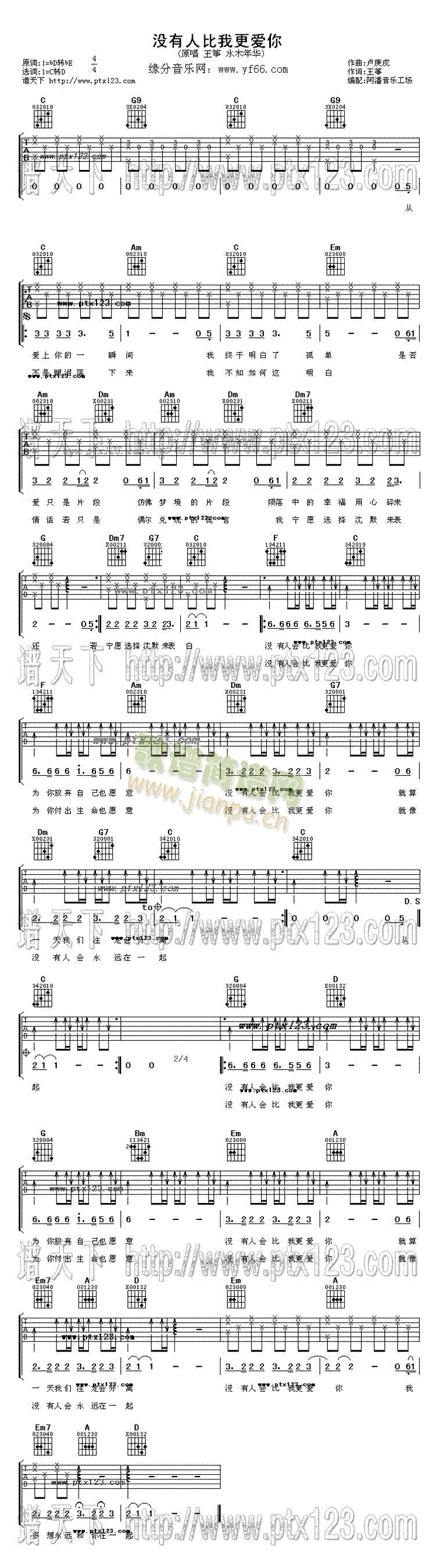 [吉他谱]《没有人比我更爱你》 王筝.水木年华