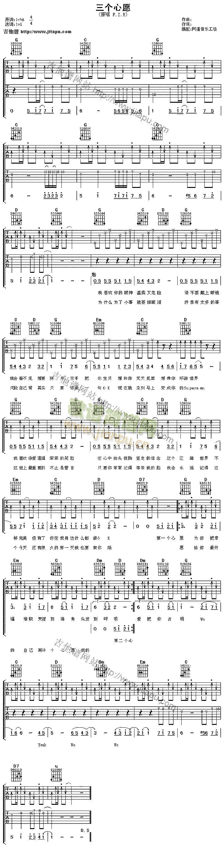 [吉他谱]心愿 王泽,杨颖,乔媛,唐景莲