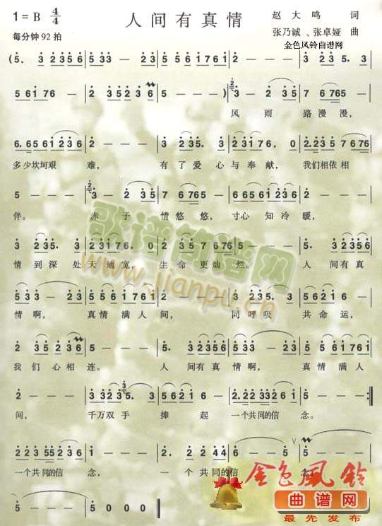 [五字歌谱]人间有真情[彩谱] 宋祖英