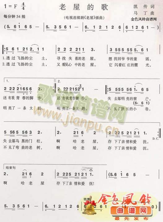 当前位置: 歌谱简谱网 > 四字歌谱 > 老屋的歌(《老屋》插曲)[彩谱]