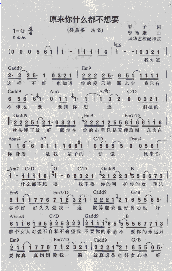 [九字歌谱]原來你什么都不想要 孙燕姿